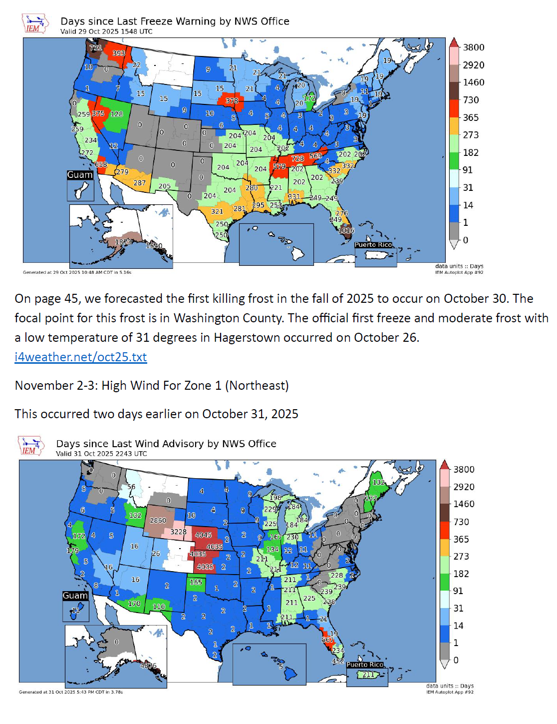 SEVERE WEATHER WATCH: The Hagerstown Town and Country Almanack sees a hard freeze hitting the Mid-Atlantic Region on the 30th.