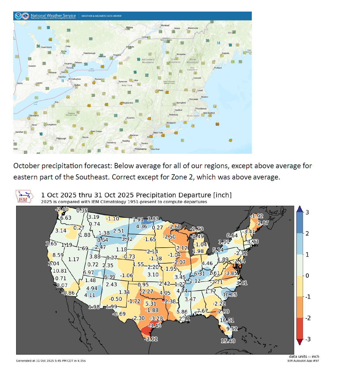 MID-ATLANTIC WEATHER WATCH: dry and seasonable at first, then rain, followed by cooler and dry weather (1,2,3,4,5); dry and turning sharply warmer on the 7th, then isolated showers and much cooler but seasonable conditions (6,7,8,9,10); dry and seasonable (11,12,13,14,15); dry and warm, then scattered showers and turning dry and cooler (16,17,18,19,20); 21-25: initially dry and turning quite warm, then rain followed by dry and seasonable weather (21,22,23,24,25); heavy rain and warm, then turning dry and much colder with a hard frost (26,27,28,29,30,31).
